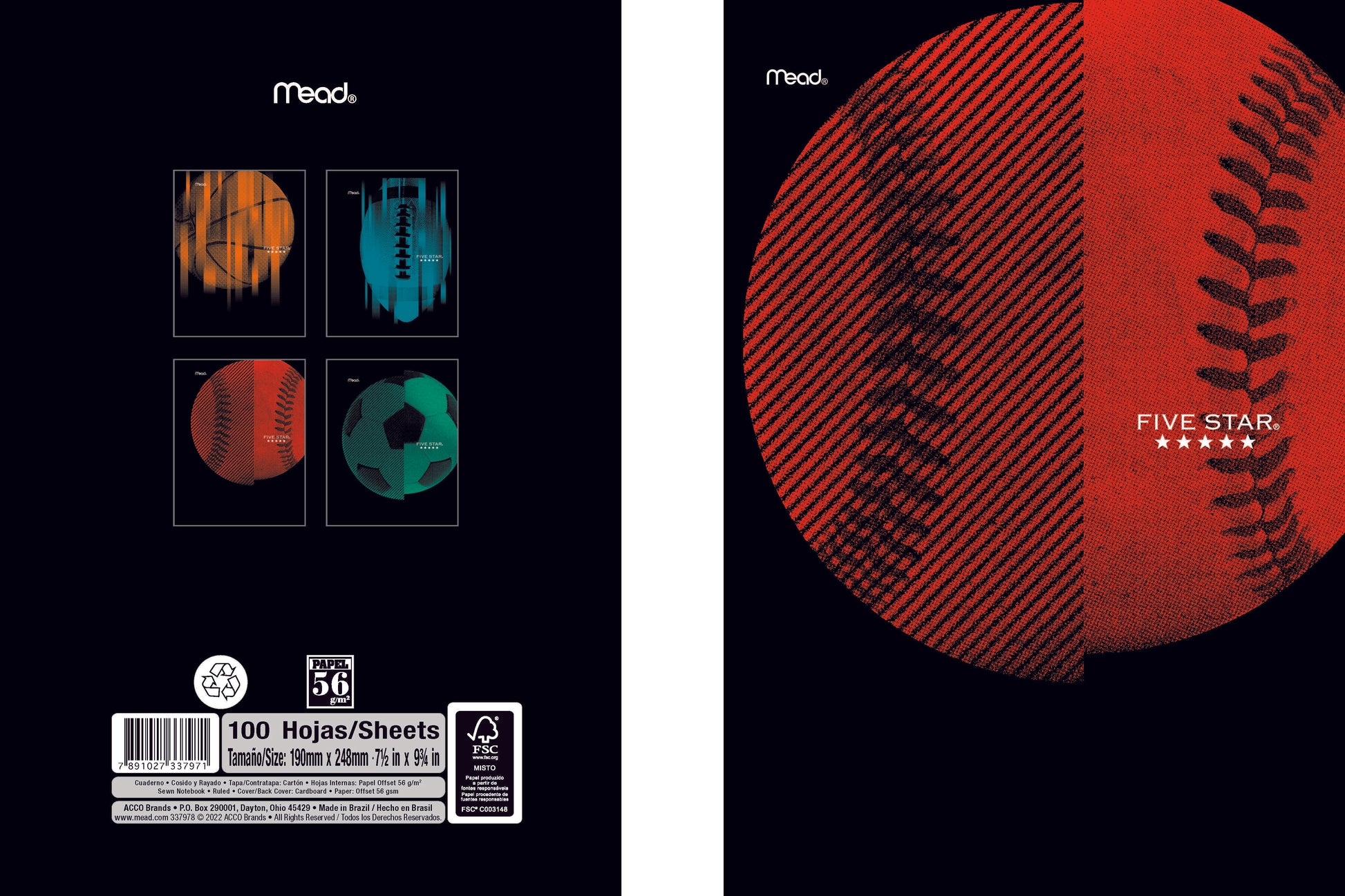 CUADERNO COSIDO 200 PAG. FIVE START SPORT
